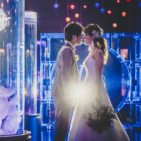 最先端の技術を駆使した音・光・映像、そしてイルカやペンギンたちがコラボレーションした水族館「マクセル アクアパーク品川」で行う記憶に残るウエディング。