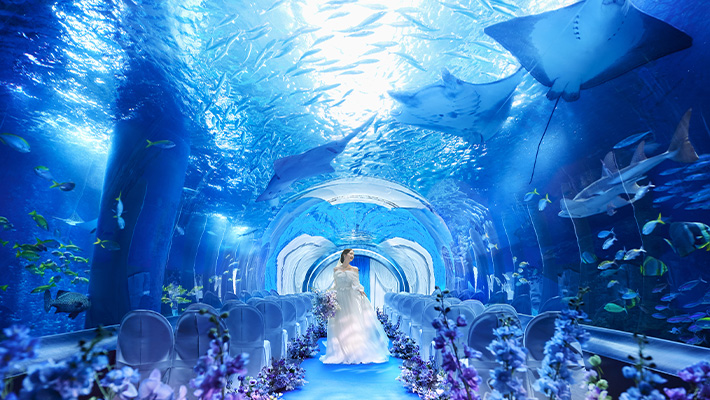 ガーデンのある独立型プライベートチャペルから水族館、バリエーション豊かな挙式会場。