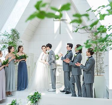 大都会の中にあるグリーンガーデンが魅力の「ホワイトチャペル」、光と水が幻想的な「チャペルTENKEI」、ゲストへのサプライズ、オンリーワンの「水族館挙式」からお好きな結婚式会場をお選びいただけます。