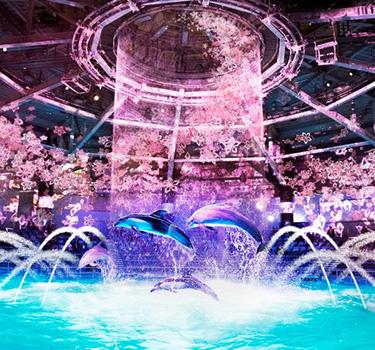 さまざまな桜が咲く春の“日本庭園”を演出したイマーシブエリア「パターンズ」や、“夜桜”をテーマとしたドルフィンパフォーマンス、和を感じさせるドリンクや甘味を提供する桜満開のカフェバーなど、見て味わって楽しいお花見をお楽しみください。