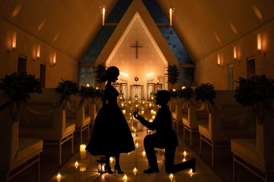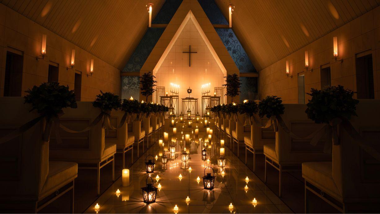 クリスマス限定のキャンドル装飾が施されたチャペルで
