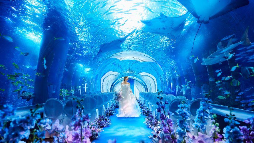 光と緑に包まれた王道チャペルを始め、オリジナル水族館WDもご案内しております。