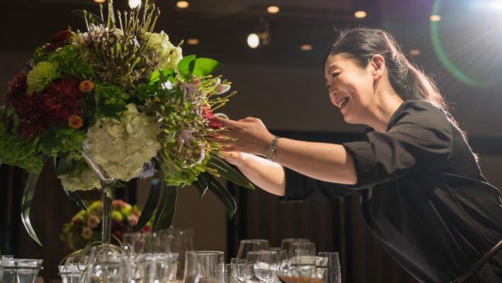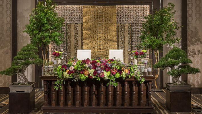 創業百年を誇り、革新を続けるフラワーショップの専属のフローリストがトレンドから王道まで、それぞれの会場に合わせたアレンジメントをご提案。これまでのフォトアルバムをもとにお客さまの雰囲気や好みのテイストを丁寧に拾い上げ、式当日おふたりとゲストのための晴れやかな空間を創出します。