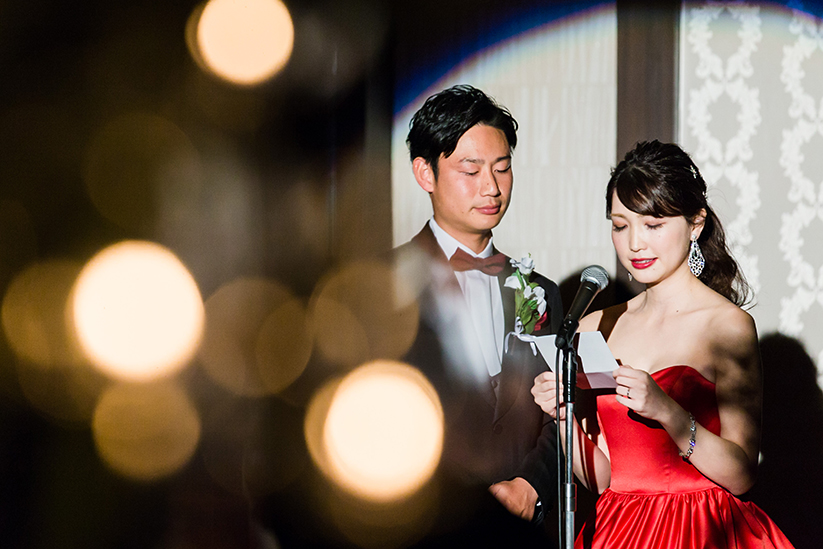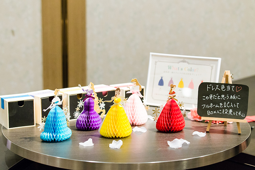 披露宴では、花嫁のドレスのカラーあてクイズを実施。