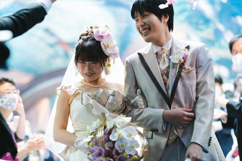 ホテル敷地内にある「マクセル アクアパーク品川」でおふたりの結婚式は執り行われました。