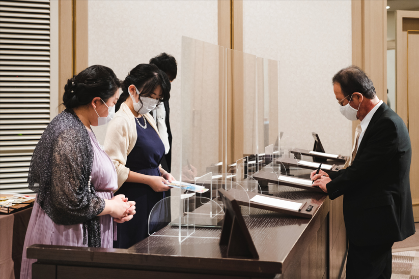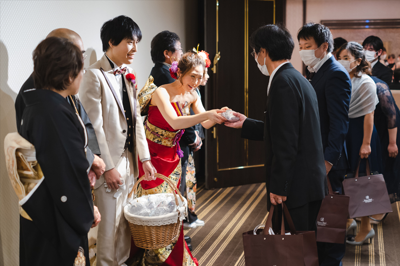 お開き後には会場出口で海の生き物のプチギフトを手渡しながら送賓をなさったおふたり。
