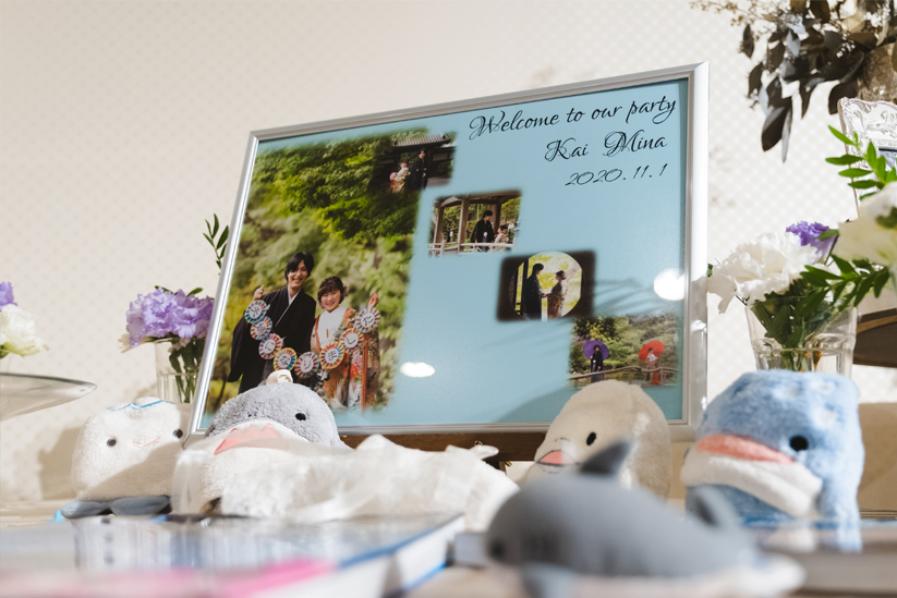 会場のウェルカムスペースには、おふたりの大好きな海に関する飾りがたくさん!