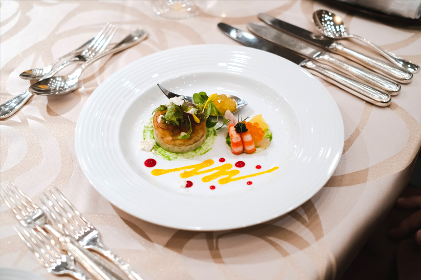 品のあるシャンデリアや印象的なゴールドの壁紙は、和装にも洋装にもマッチ。