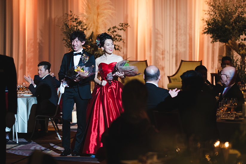 おふたりとの距離を遠くに感じてしまわないようメインテーブルを置かず、ゲストのもとへ足を運ぶ工夫をとられていました。
