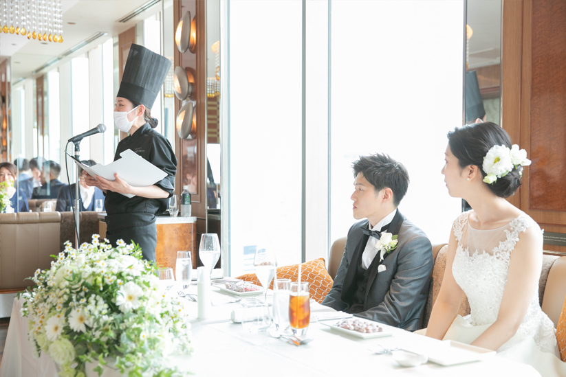 ご新郎さまのご挨拶と乾杯から始まったパーティーは、シェフがこの日のために創り上げたお料理の香りとゲストの方々の楽しそうなご歓談の声で満たされていました。