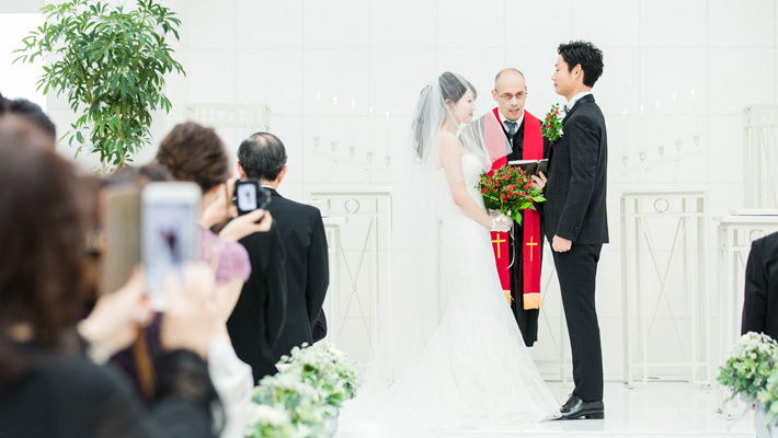 神秘的な静けさに包まれたチャペルで、ゆっくりと扉が開くその先に、大切なゲストたちの笑顔が広がります。