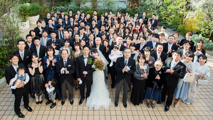 開放感あるガーデンで、ゲスト全員と記念撮影をお撮りします。
