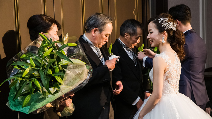 おふたりからご両親へのプレゼントの贈呈に会場は感動に包まれます。