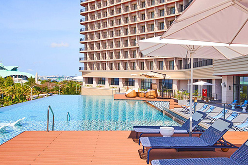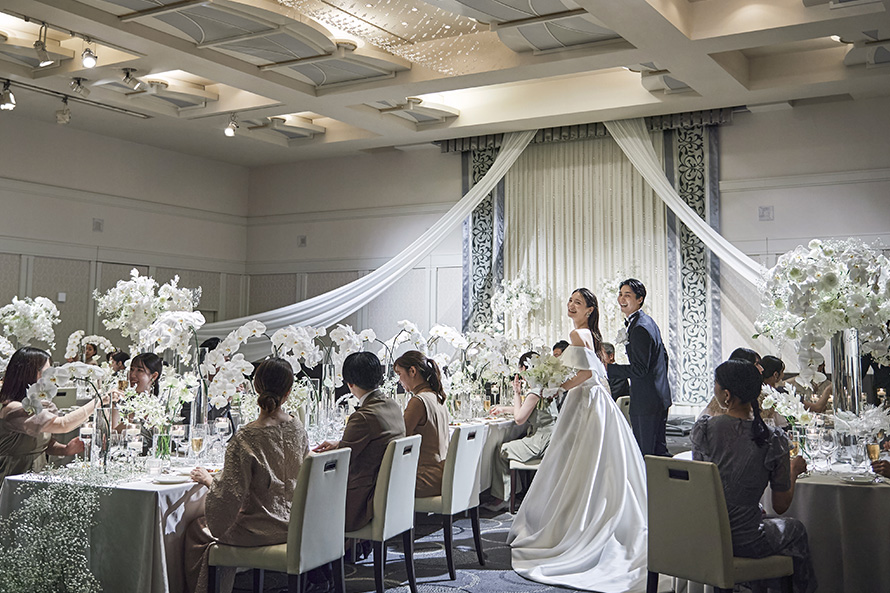 新郎新婦様へご結婚式当日のご宿泊(朝食付き)をプレゼント。前泊に変更してゆったりとご準備いただいたり、ご家族とホテル内のレストランやエンターテインメント施設で楽しくお過ごしいただくことができます。