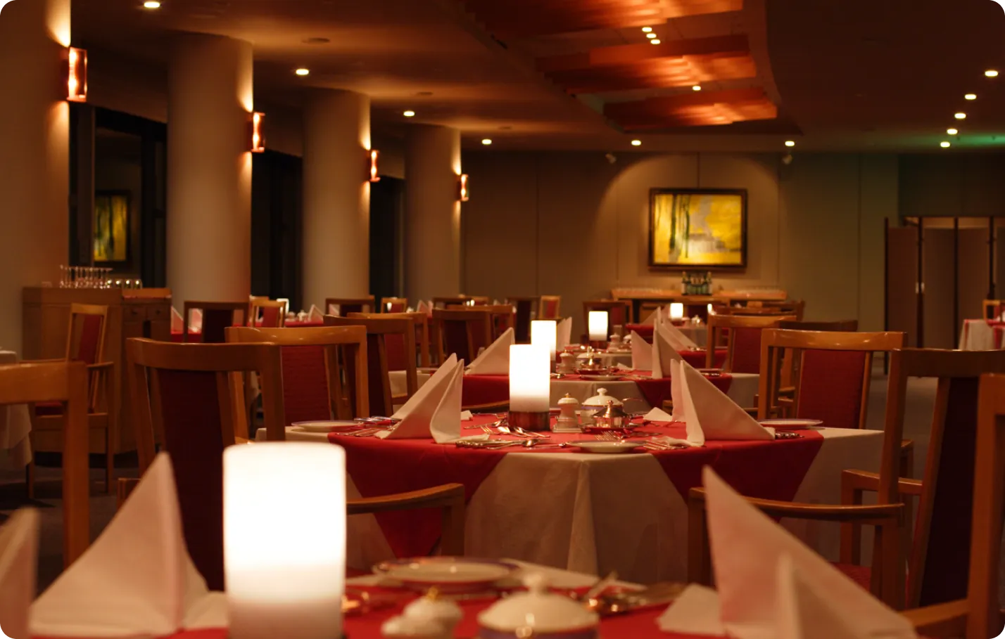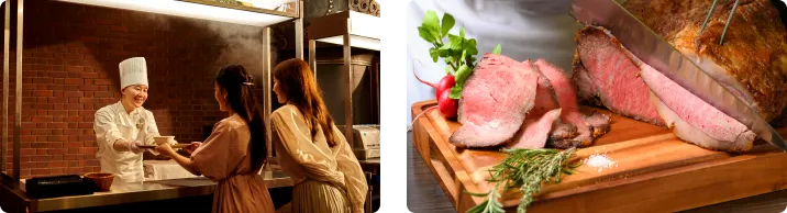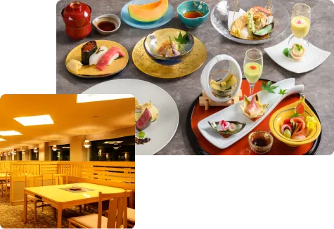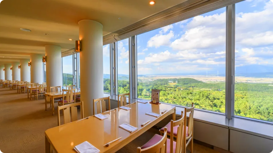 ホテル最上階レストラン「からまつ」からは一面に広がる十勝岳連峰を望みながら昼食をお楽しみください。