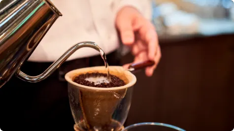 ゆったりとしたランチ食後にはミルで挽いた豆で香り豊かなコーヒーを。