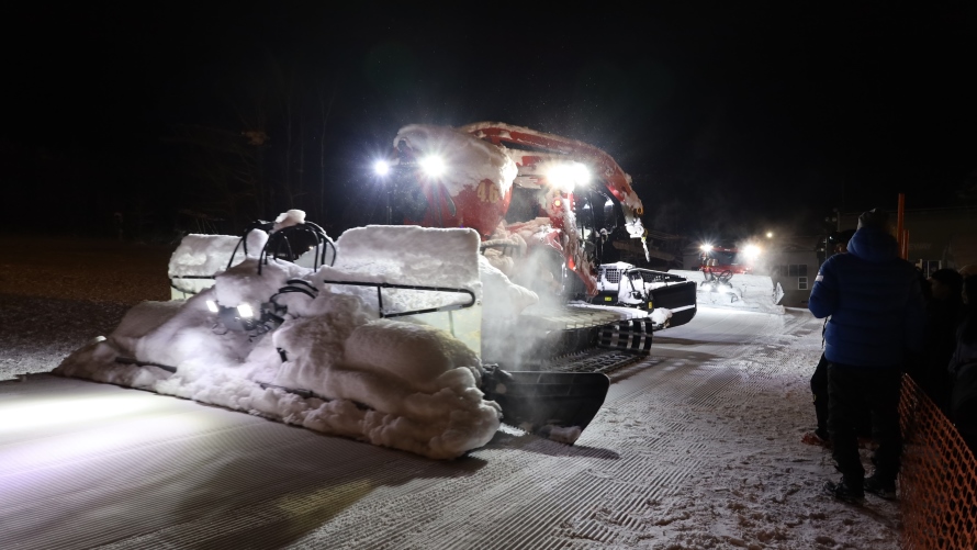 圧雪車の助手席に乗車し、ゲレンデを整備する体験です。
