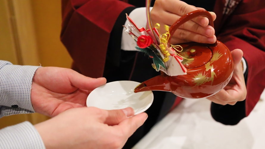 お正月に無病長寿を願って飲まれるお屠蘇を、朝食会場前でサービスいたします。