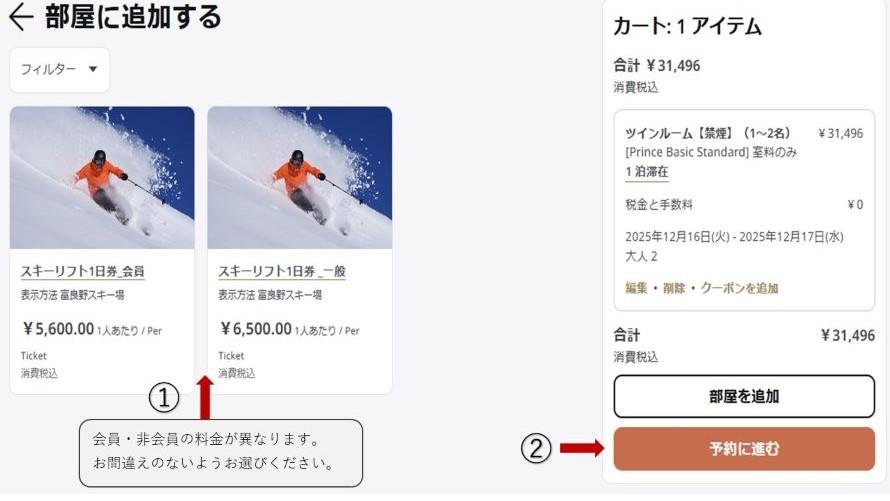新富良野プリンスホテルでは、公式ホームページ全ての宿泊プランに「事前予約限定の特別料金」にてスキーリフト1日券を必要に応じ、オプション購入が今年もできるようになりました。