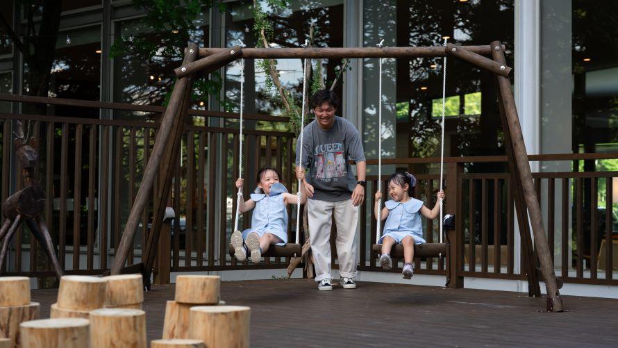 ひとときをお過ごしいただけます。また、『スラックライン』や『ウッドブランコ』等のアクティビティ、『レザー調のチェア』や、