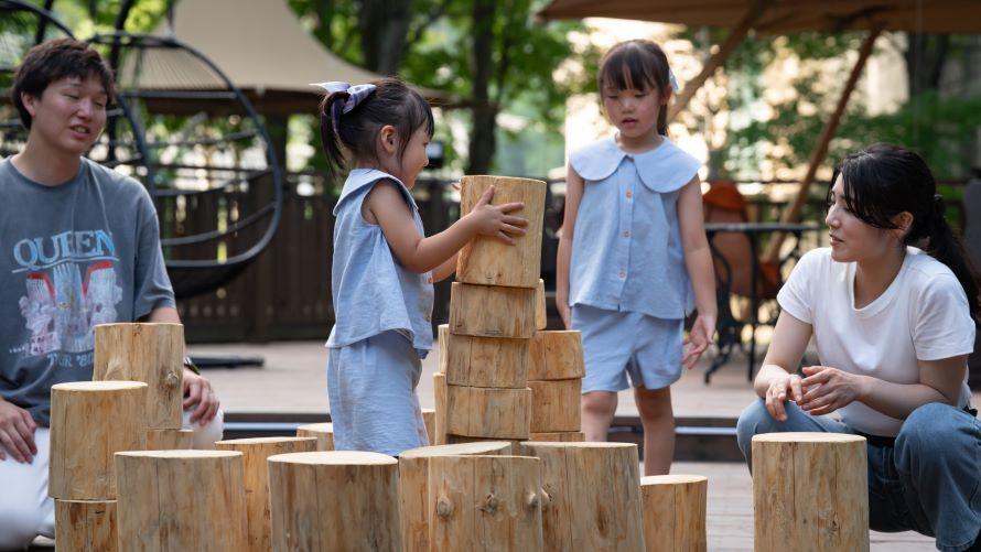 『焚き火』でゆっくりとご家族や大切な人との時間をお過ごしください。『丸太の積み木』は、富良野自然塾という地球環境