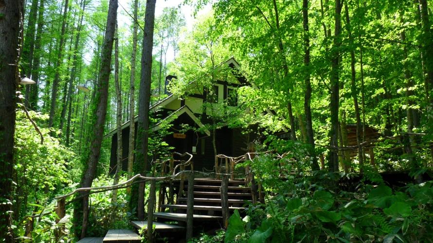 木立の中にひっそりとたたずむ「珈琲 森の時計」。