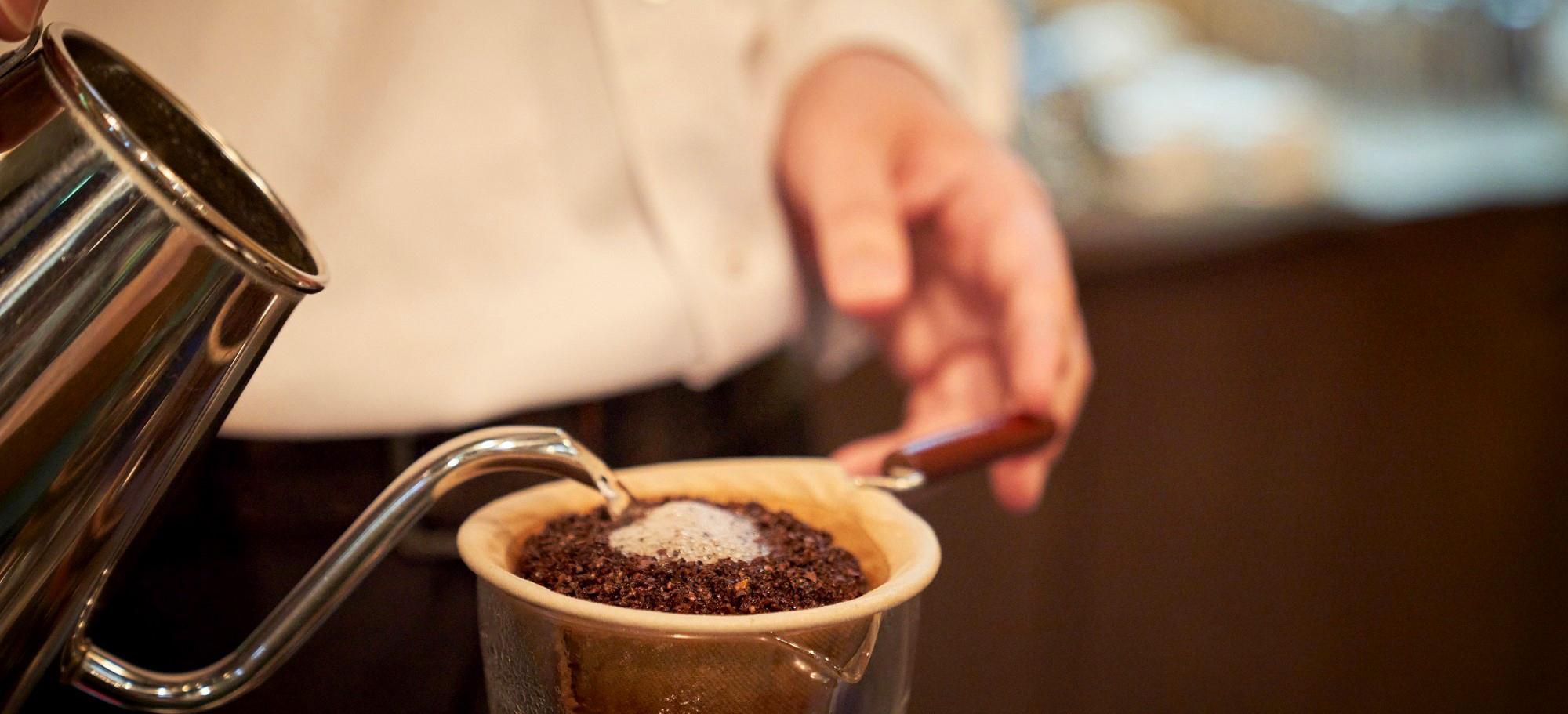 カウンター席では自分でミルを使い挽いた珈琲豆を、目の前で淹れてくれます。