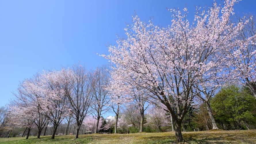 十勝岳連峰を一望でき、春には約3,000本の桜が咲き誇ります。