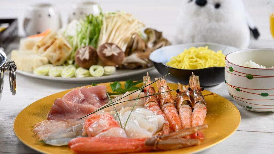 海の幸を贅沢に味わえる「海鮮しゃぶしゃぶ鍋」です。新鮮なエビ、ホタテ、カニ、など、旬の魚介をさっとしゃぶしゃぶ。素材本来の旨みが引き立ち、上品で深みのある味わいを楽しめます。ポン酢や自家製みぞれ酢など、お好みのタレでお召し上がりください。