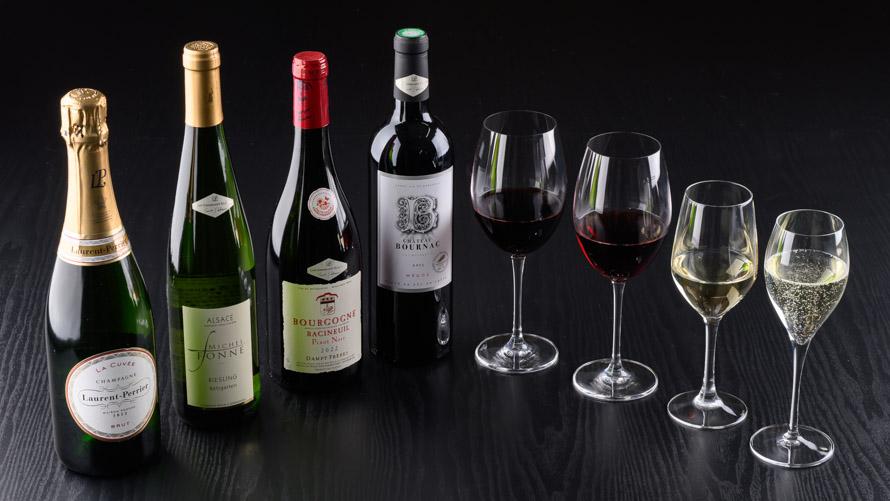ソムリエが厳選したワイン4種セットもお楽しみください。