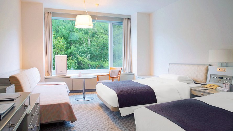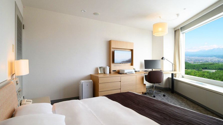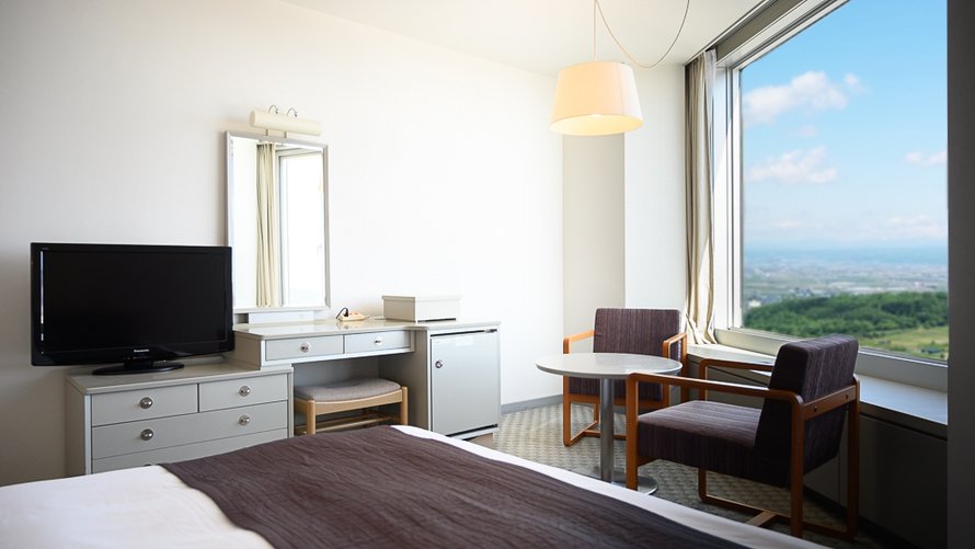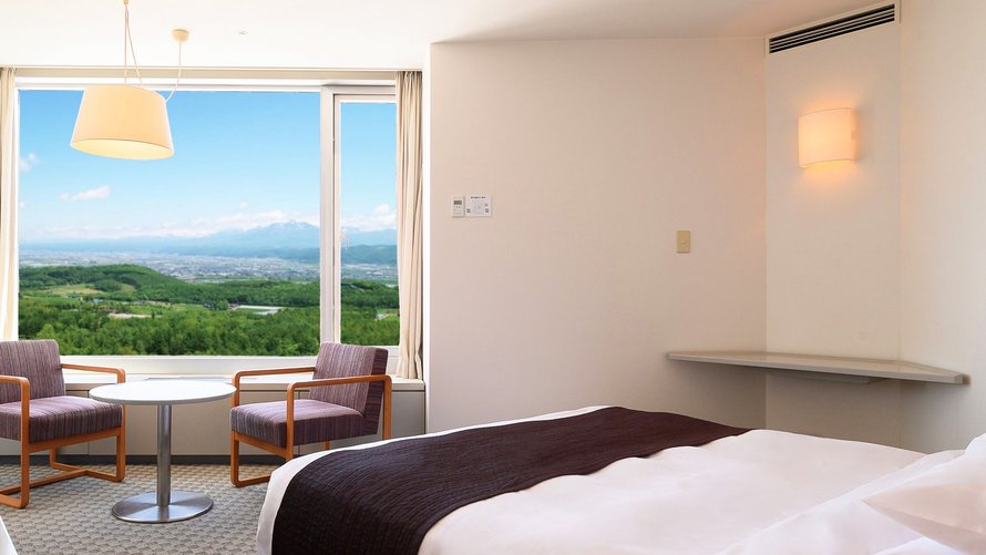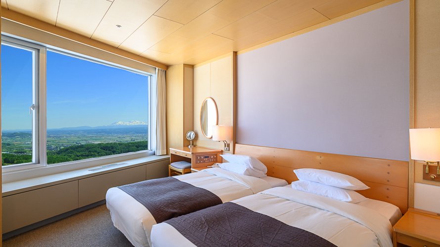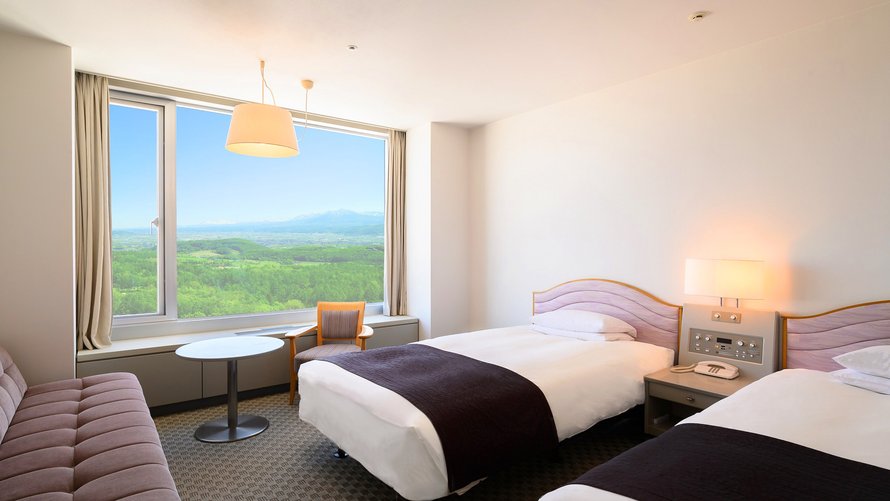 十勝岳連峰・富良野盆地を眺望できる高層階のツインルームです。