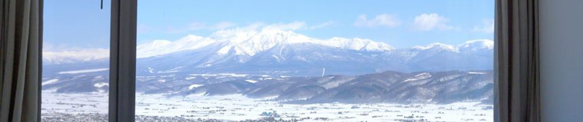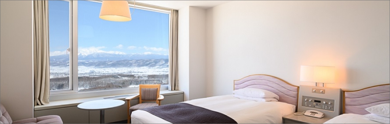 十勝岳連峰・富良野盆地を眺望できる高層階のツインルームです。