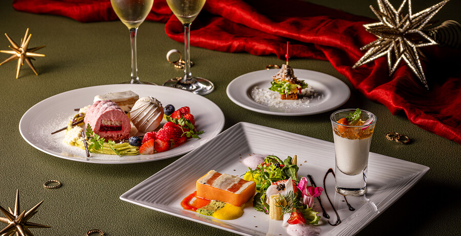 煌めくクリスマス装飾が、ホテル全体を包み込みました。クラシカルでシックな装飾があたたかみを添え、エントランスからロビー、レストランまで心躍る空間が広がっています。思わず写真を撮りたくなる特別な瞬間を、ぜひシェアしてください。
