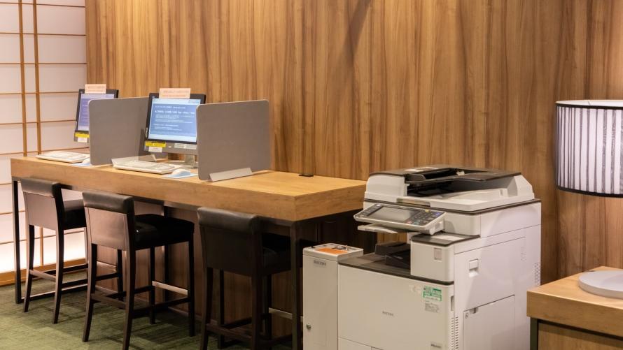ご宿泊者さま専用のラウンジ内にパソコンとプリンターをご用意しております。(有料)