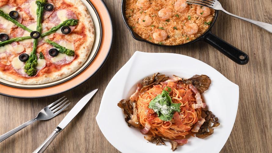店内で焼き上げるピザやパスタを中心に季節ごとのメニューをご用意。