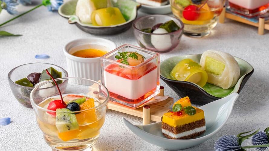 香り高くとろける桃と、爽やかに広がるメロンの甘さを、涼しげな彩りとともに表現しました。食感の違いや、動きのある盛り付けなど、五感で楽しめるひとときをお過ごしください。