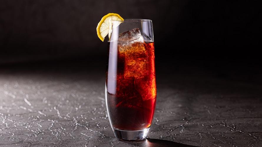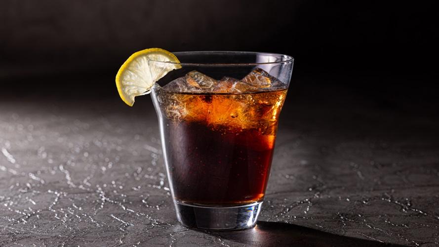 【カクテル】ウイスキー、コーラ、トウガラシシロップ、レモンシロップ、レモンスライス