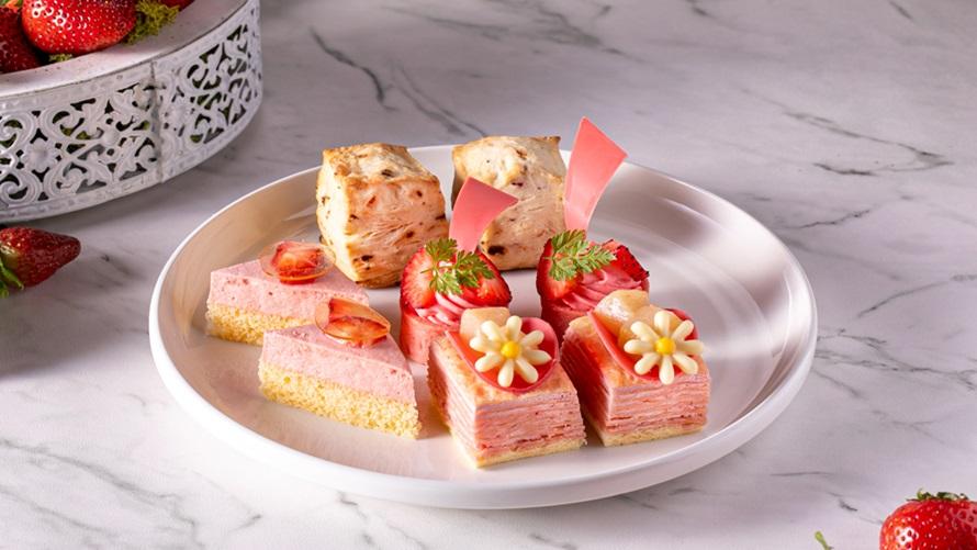 【2026.3.1-5.6】第2弾は、春の陽ざしのような「Peach Jelly」と“苺”の赤を掛け合わせ、春の訪れを可愛らしく表現したアフタヌーンティー。