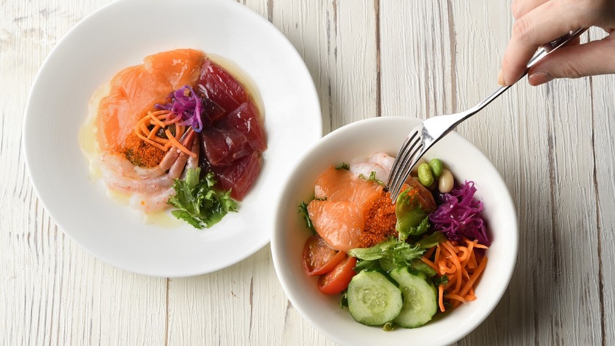 スタッフおすすめ魚介のぶっかけ丼やカルパッチョ、シーフードのマリネなど魚介類を主役とした和洋の冷製メニューが登場。