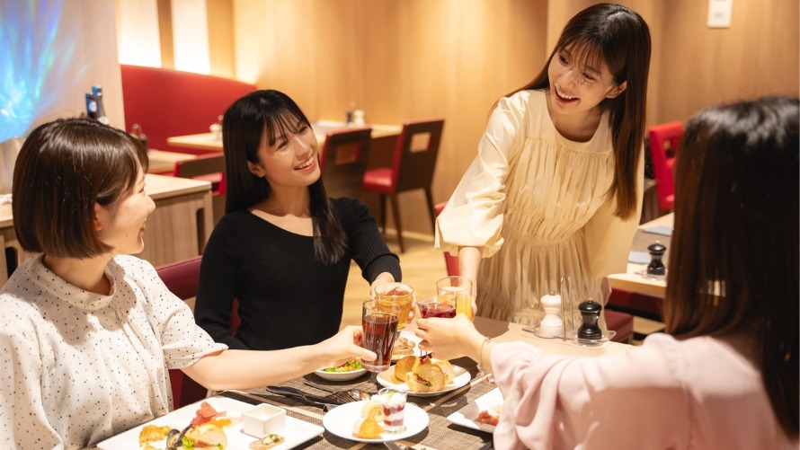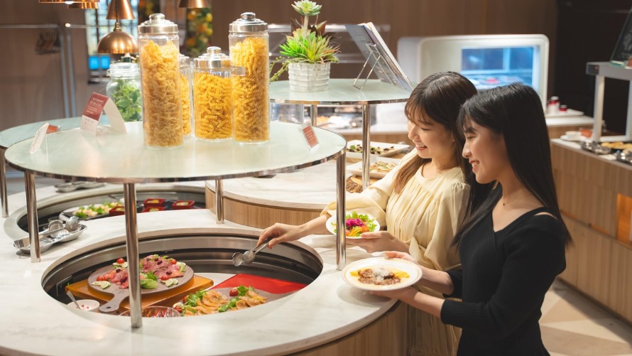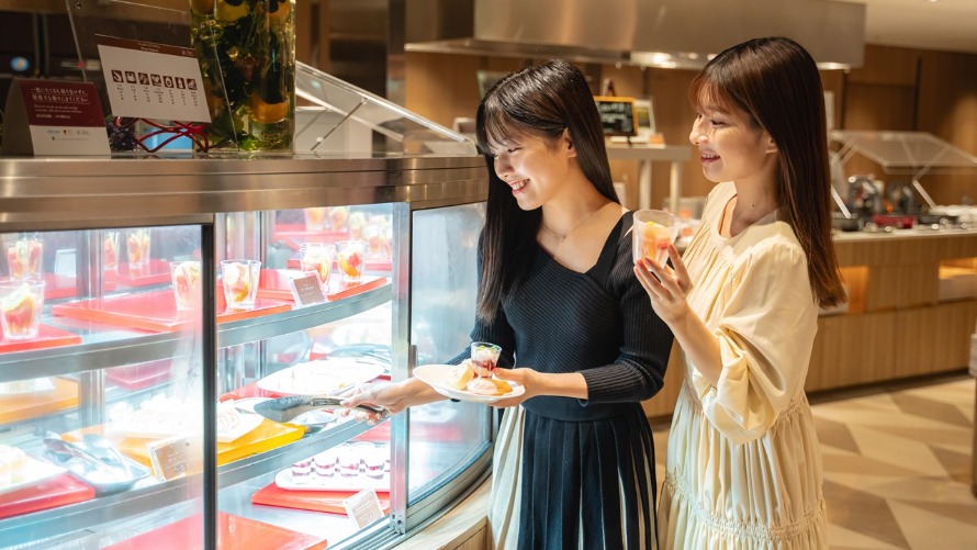 「市場(マルシェ)」を連想するようなシェフやスタッフたちの声が飛び交う賑やかで活気ある店内。季節の素材食材や日本各地の素材を“ビストロ”スタイルにアレンジしたバラエティ豊かなブッフェメニューに加え、ライブキッチンでは出来立てのパフォーマンスをお楽しみいただけます。お席までお届けするこだわりの逸品など。シェフおすすめのお召し上がり方のご提案や、スタッフ厳選のワインとともに、思わず「笑顔」になるワクワクしたひと時をお届けいたします。