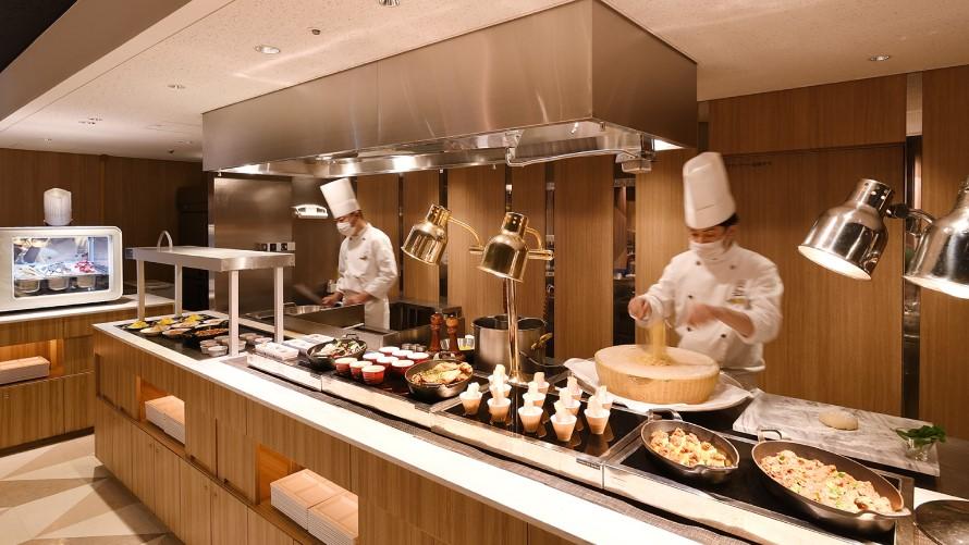 季節の食材や日本各地の素材を“ビストロ”スタイルにアレンジしたバラエティ豊かなブッフェメニューに加え、ライブキッチンでは出来立てのパフォーマンスをお楽しみいただけます。