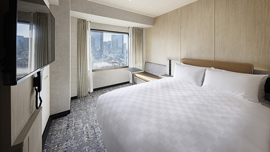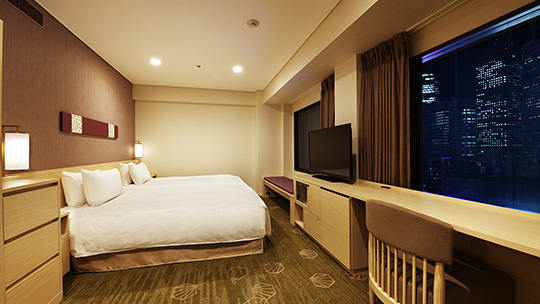 新宿からの眺望を感じる解放感のある空間。リラックスし寛げる客室です。