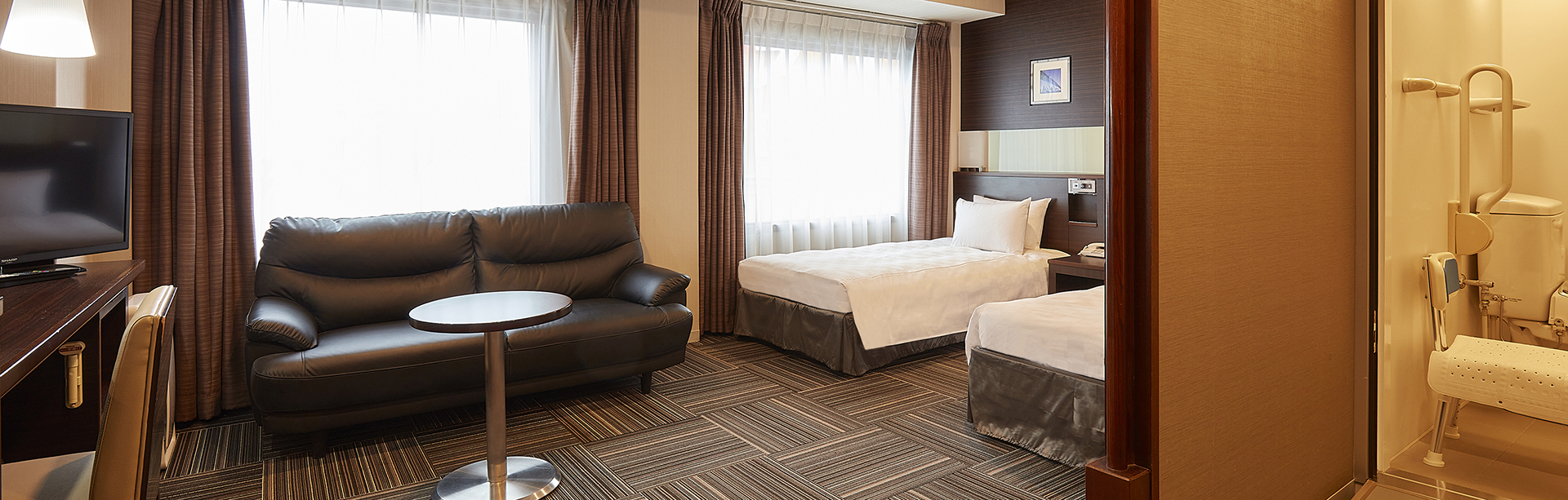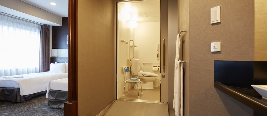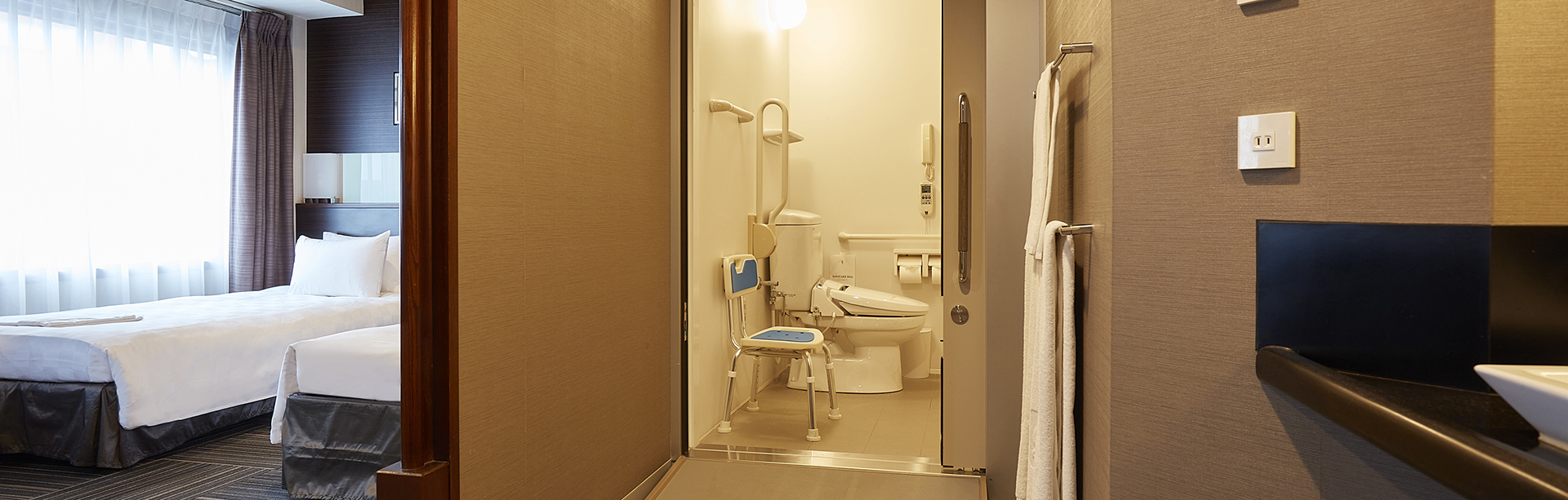 ユニバーサルルームは、車椅子のままでも快適にお過ごしいただけるよう工夫をこらした機能的なお部屋です。