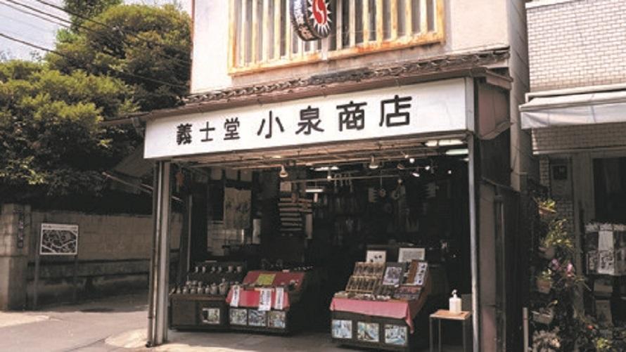 泉岳寺の門前にある創業 100 年を超える老舗土産店。忠臣蔵に関する雑貨やお土産を取り扱っています。四十七士が吉良邸に討ち入った際、大石内蔵助が打ち鳴らした陣太鼓のグッズも。