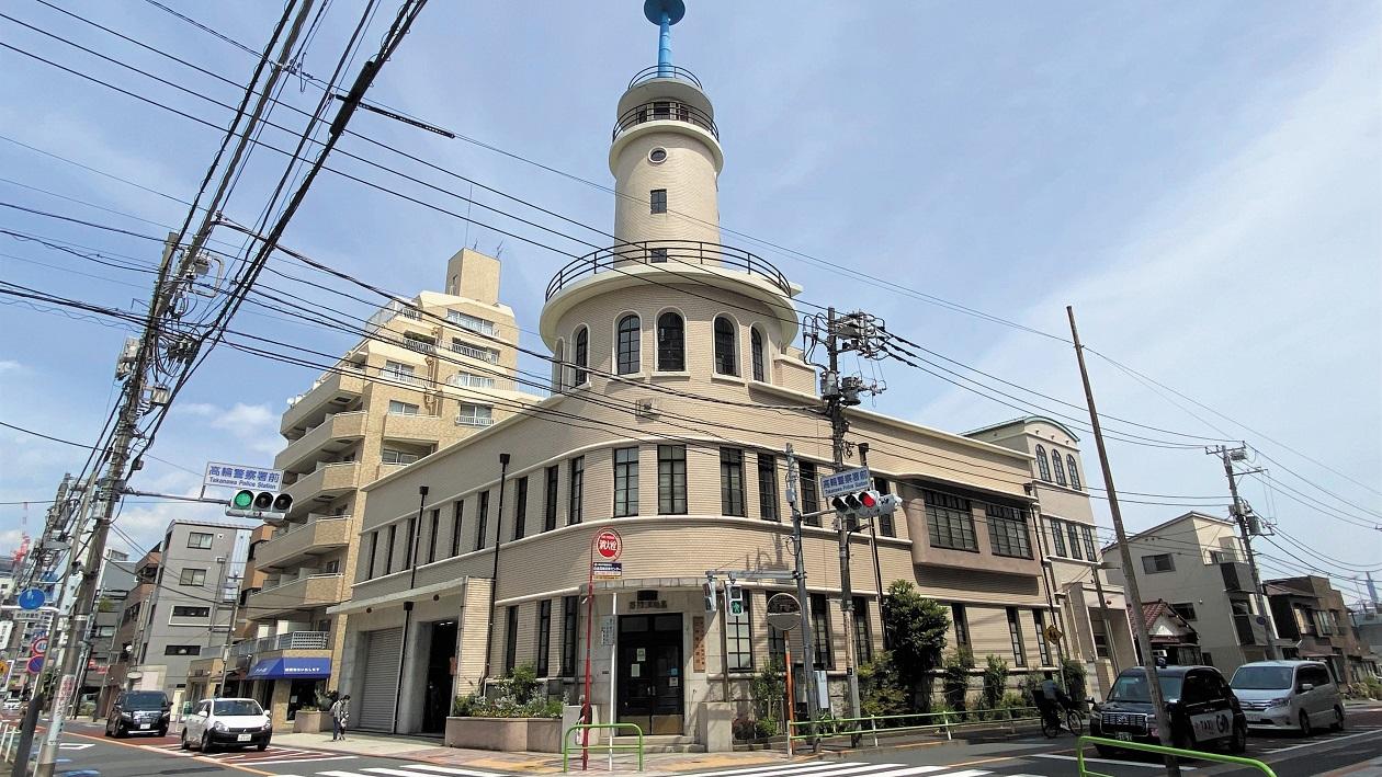 高輪警察署前交差点に面した高輪消防署二本榎出張所は、昭和8年12月28日に落成したもので、近代建築の遺産(ドイツ表現主義)として東京都文化デザイン事業により保存建築物に指定されています。配置されている消防車両は、ポンプ車1台、化学車1台、補給車1台です。庁舎内部は見学可能です。