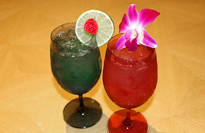 ブルーキュラソーを使用した爽やかな1杯(写真左)と