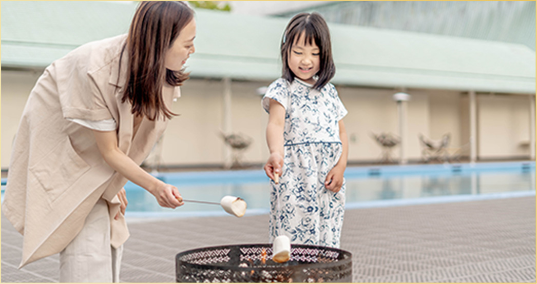 マシュマロは焚き火エリアで火に炙ってお楽しみください。