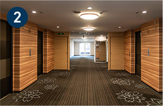 グランドプリンスホテル新高輪ロビーより、客室棟エレベーターで2Fへ進みます。
