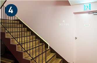 2Fエレベーターホール正面の扉より、スカイプール方面へ進みます。