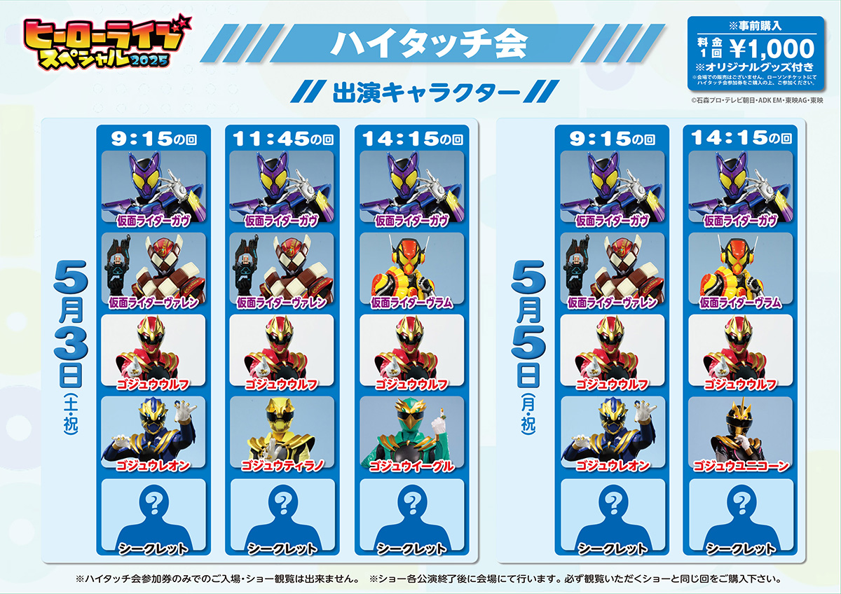 - ※各公演、ハイタッチ券の数に限りがございますので、売り切れの場合はご容赦ください。